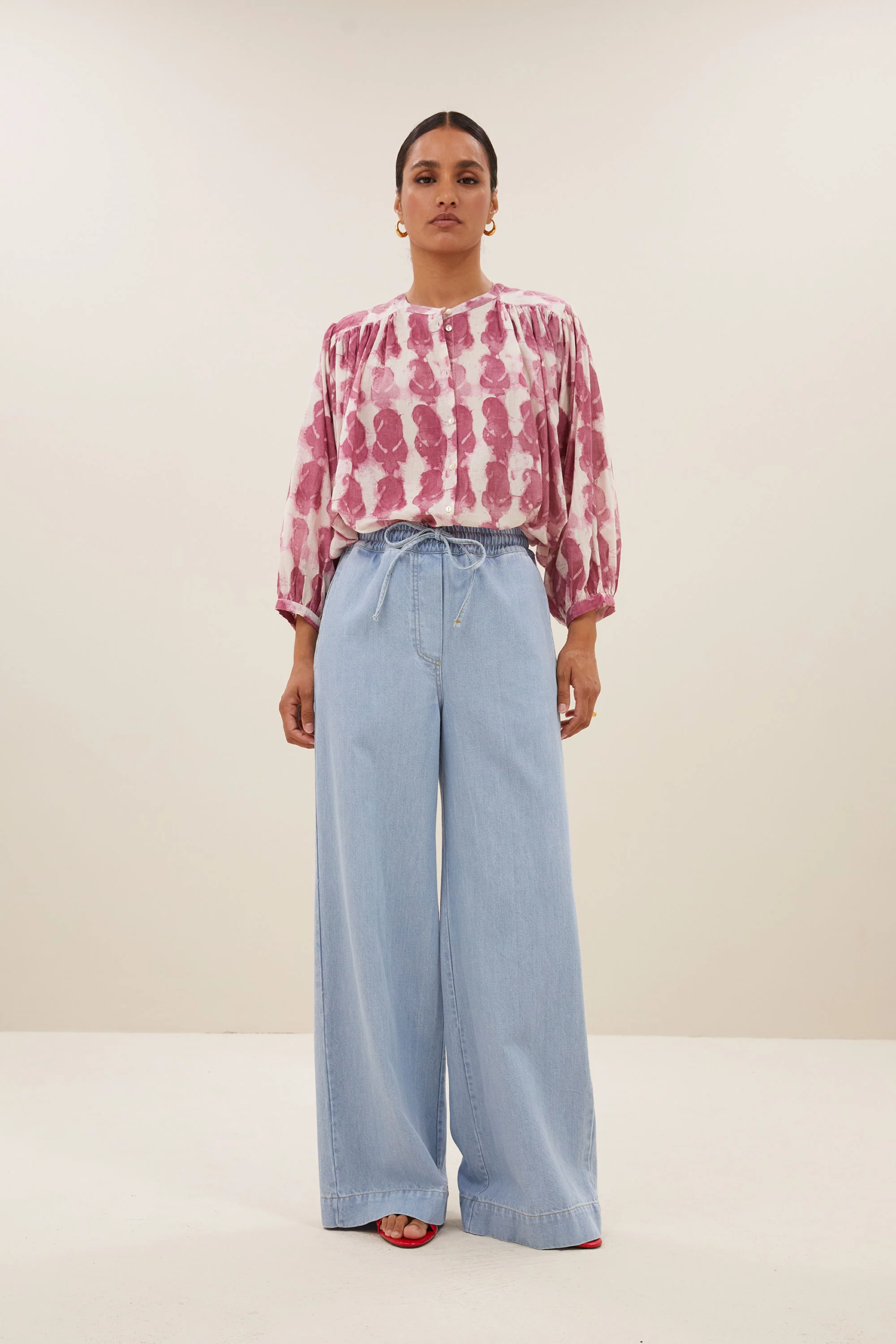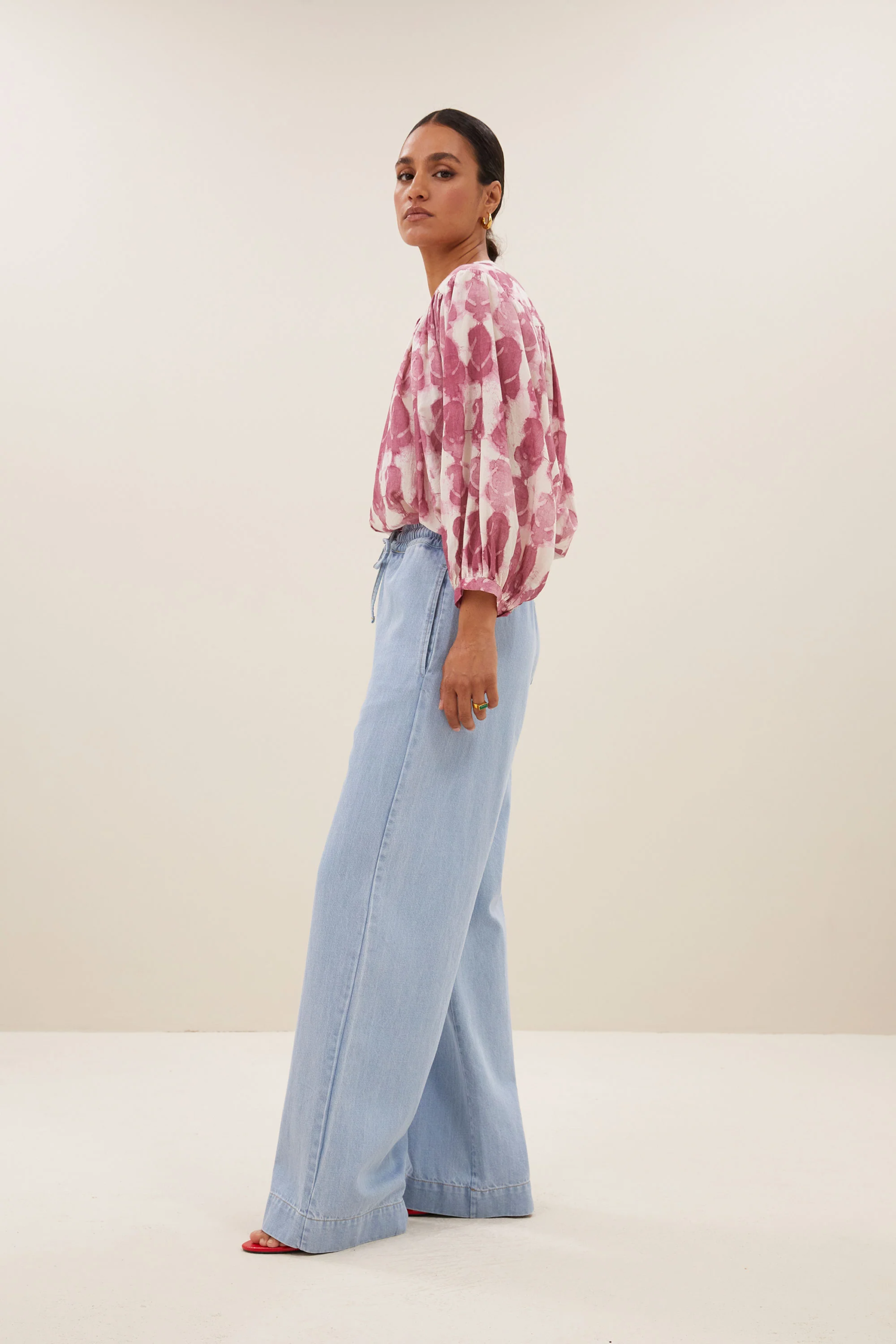 By bar Amsterdam Bluse Becky“ merlot. rundhalsausschnitt, voluminöse Ärmel, kleine Falten auf der Vorder- und Rückseite und ein wunderschöner Print.