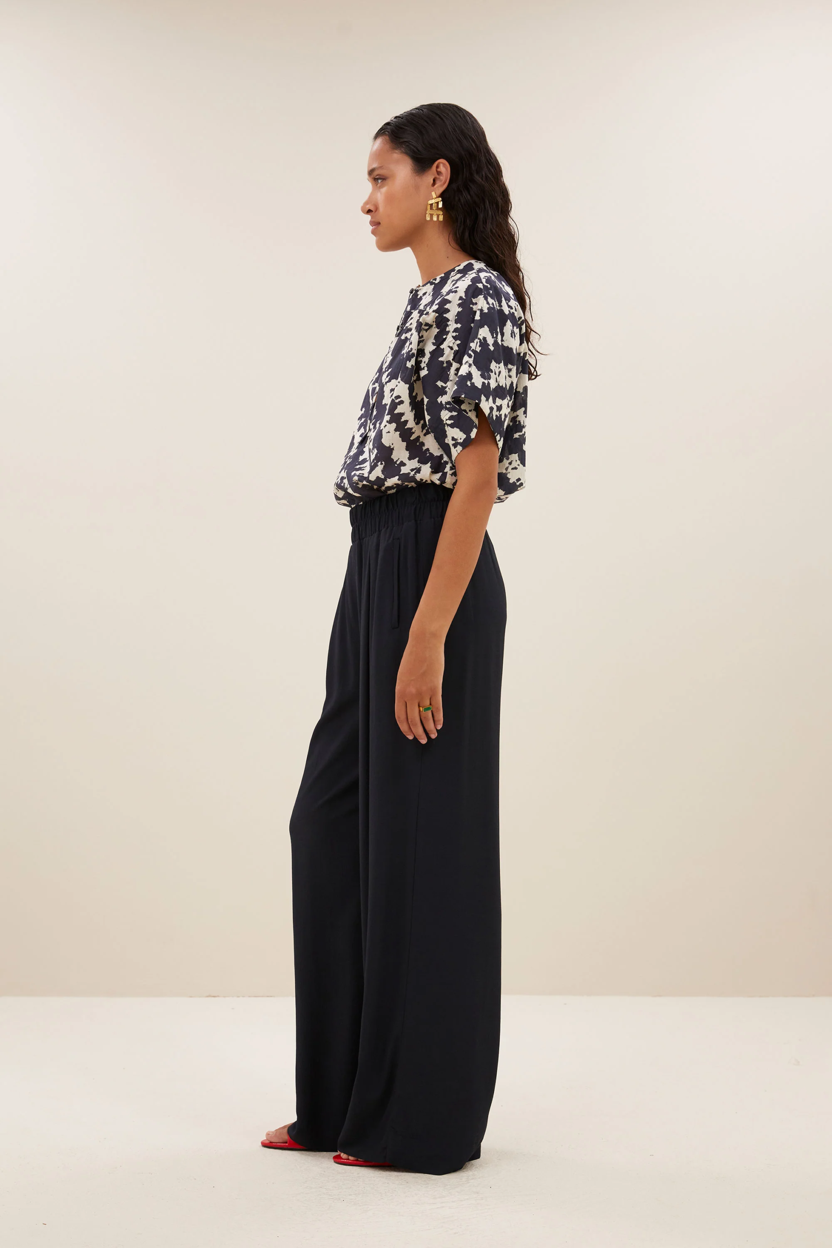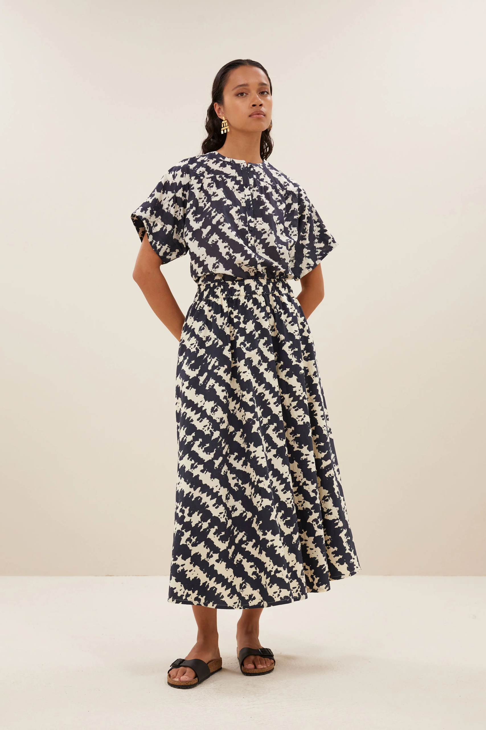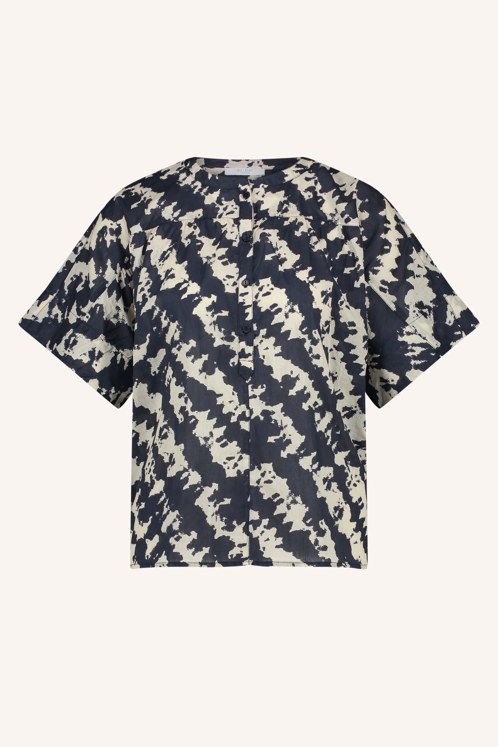 By Bar Amsterdam Bluse Bo Shade. Entspannte Bluse mit tollem Allover-Print. Leichte Baumwolle-Qualität. Halb geknöpft.