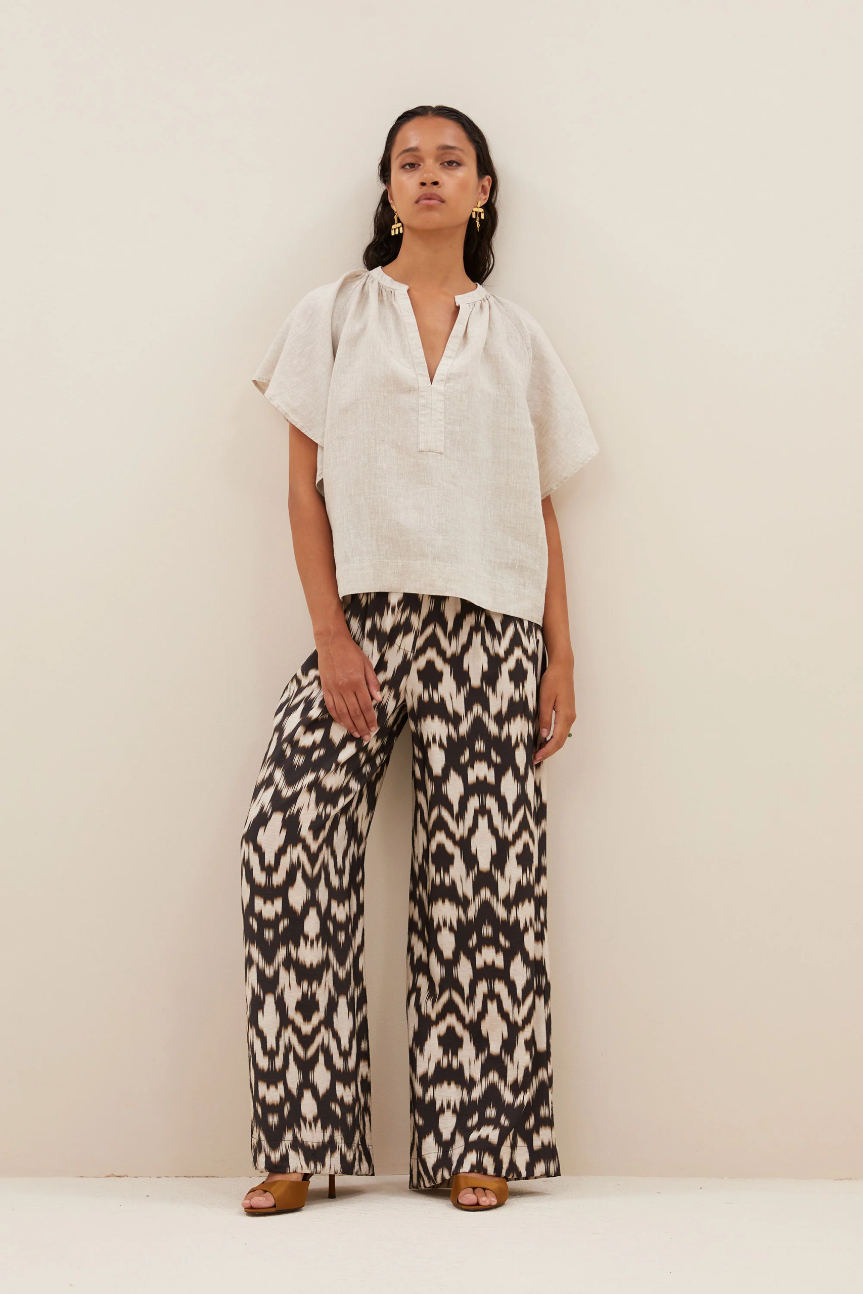 By bar Amsterdam Hose Benji, Farbe brown batik. Die Besteller-Hose mit dem unverkennbaren Schnitt. Weiter und bequem. Schön fließende Viskose.