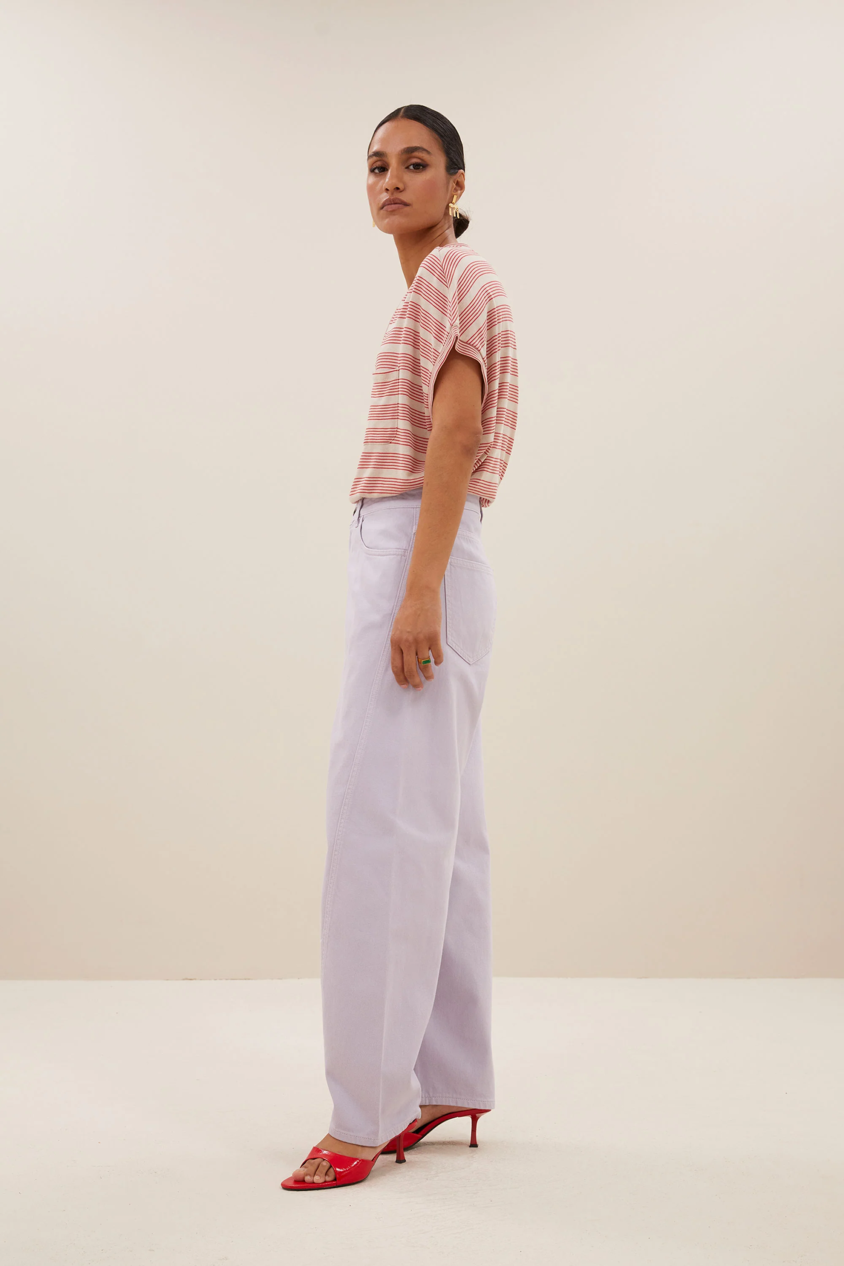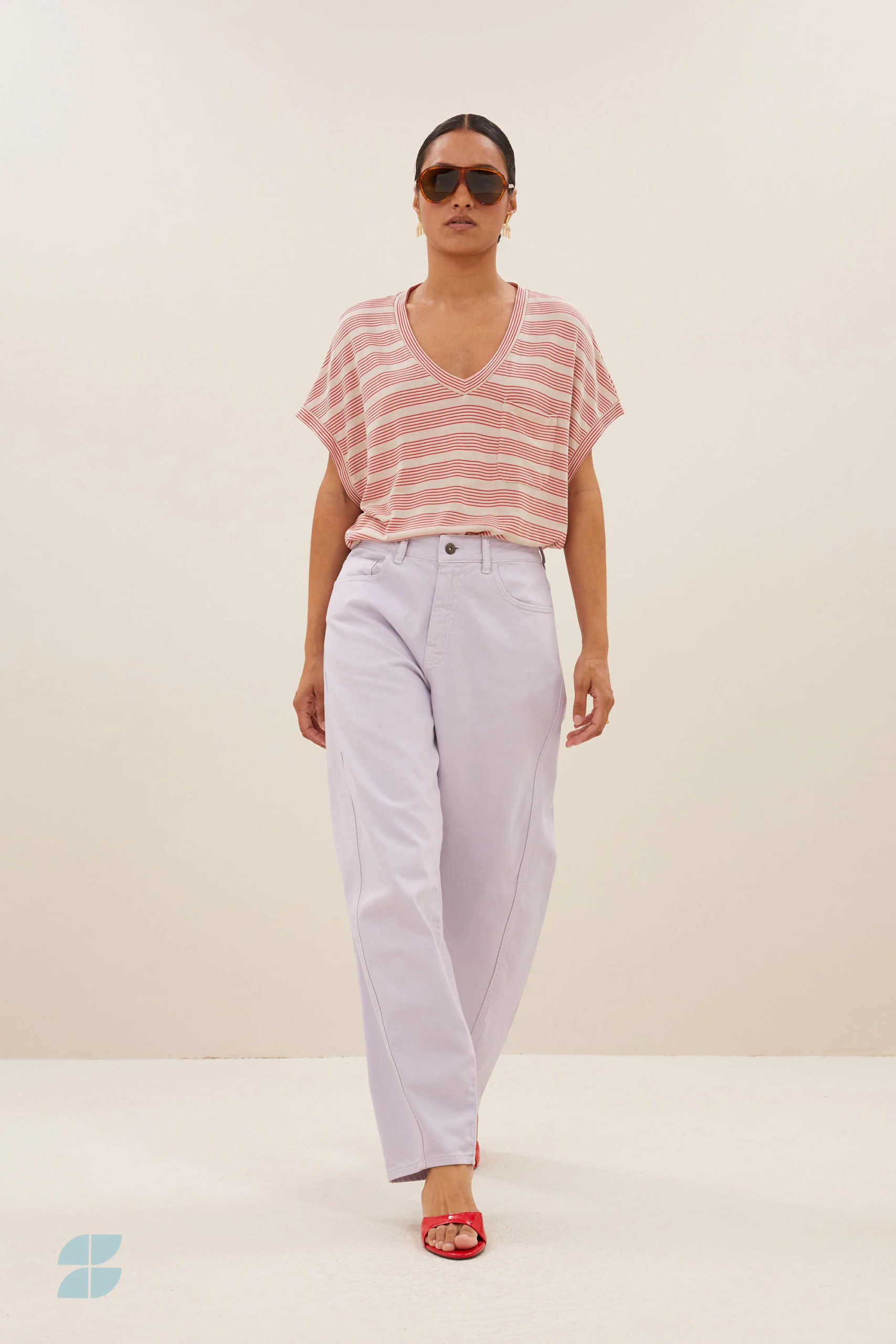 By Bar Amsterdam Tyler Top. Tyler nautic stripe Top. Weiches Shirt aus Ecovero-Viskose. Schmeichelhafter V-Ausschnitt. Zarte, rote Streifen. Grundton ein warmes Beige.