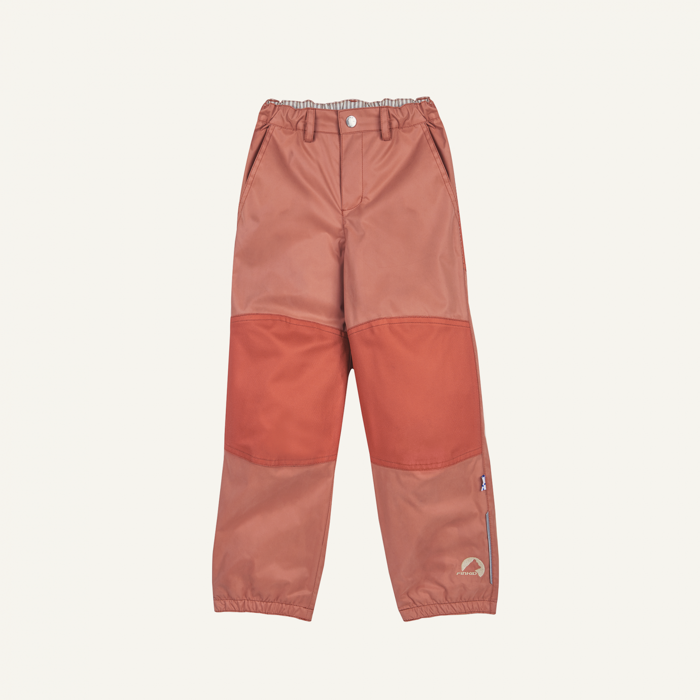 Wetterfeste Outdoorhose Latuli von Finkid. Die Hose ist wasserfest wärmeisolierend. Extra strapazierfähig an den Knien und Po. Gefüttert mit einem warmen Fleece.