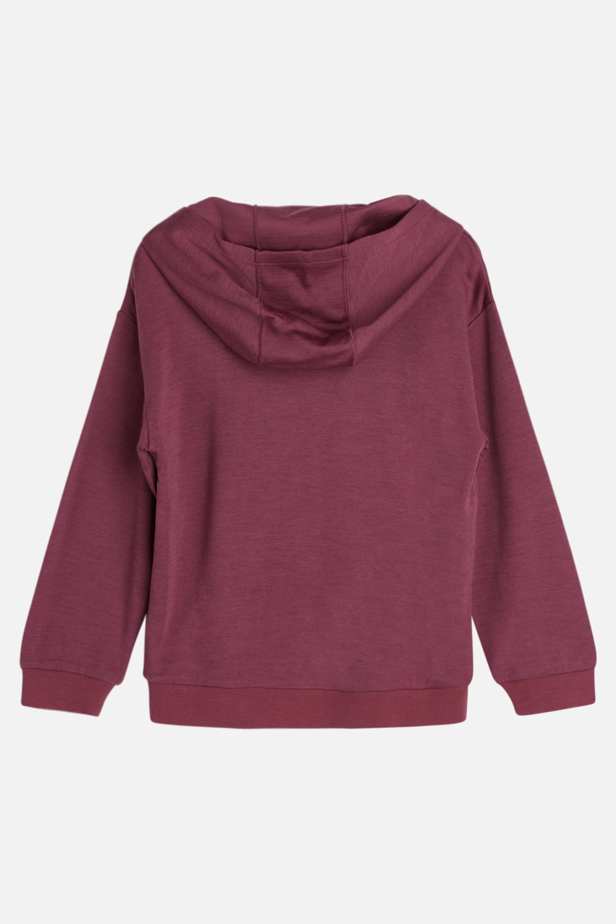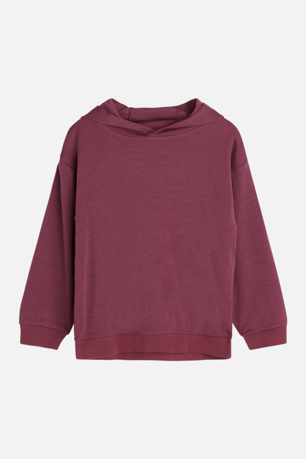 Hust & Claire Shirt Sanu in Beere. Fühl dich wohl in deiner Haut! Das wunderbare Gemisch von Wolle und Bambusviskose führt zu einem tollen Tragegefühl. Wolle hat die Eigenschaft zu wärmen ohne das du schwitzt. Die nachhaltige Bambusviskose macht den Stoff besonders leicht und weich.