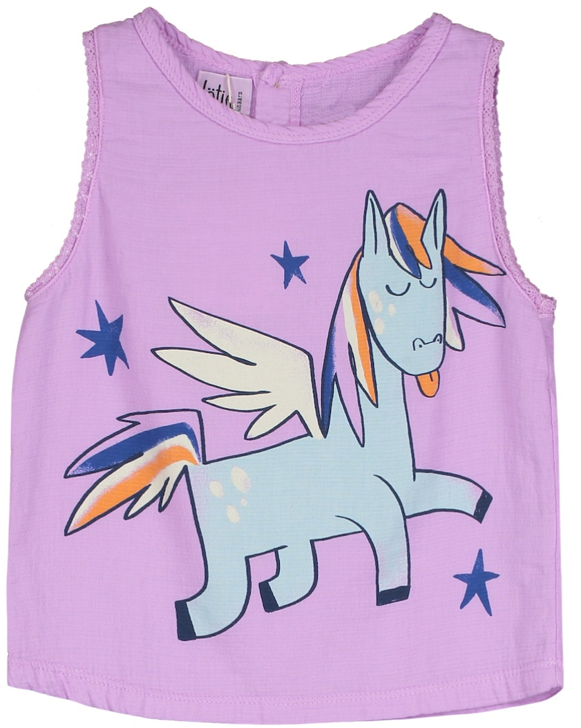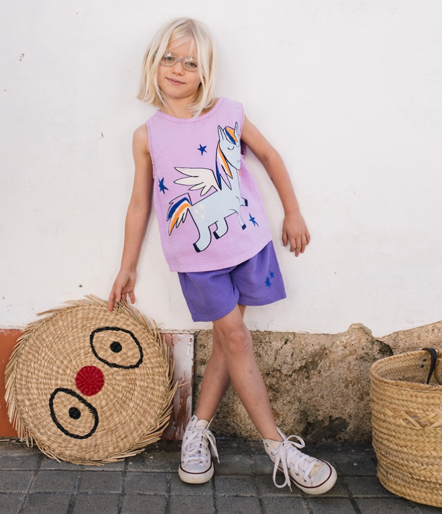 Lötiekids Pegasus Shirt. Süßes Musselin-Shirt des Labels aus Barcelona. Kleiner Spitzenrand am Armanschluss.